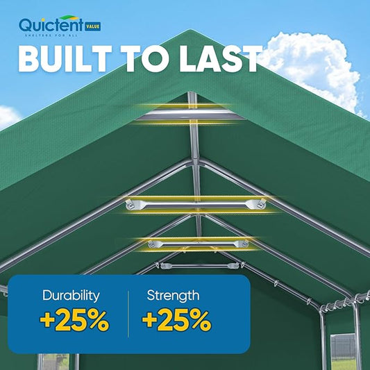 Quictent 10x20 ft Heavy Duty Carport Canopy Galvanized Car Tent Outdoor Garage Boat Shelter with Reinforced Structure, with Hanging Edge - Green