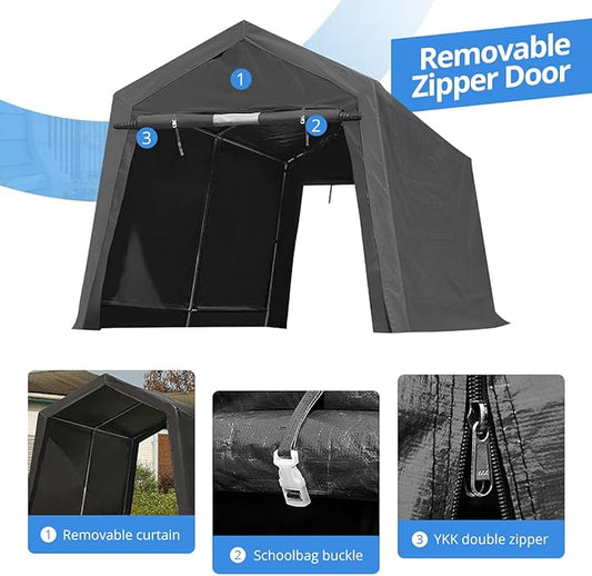 ADVANCE OUTDOOR 6X8 ft Outdoor Portable Storage Shelter Shed with 2 Rolled up Zipper Doors & Vents Carport for Motorcycle Waterproof and UV Resistant Portable Garage Kit Tent, Gray