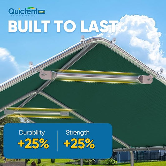 Quictent 10x20 ft Heavy Duty Carport Canopy Galvanized Car Tent Outdoor Garage Boat Shelter with Reinforced Structure, No Sidewall - Green