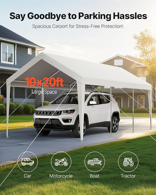 VEVOR Carport, 10 x 20 FT Outdoor Car Canopy, Potable Carport, Heavy Duty Galvanized Cars Shelter, UV-Resistant & Water-Resistant, All-Season Protection, Storage Shed for Car Boat Motorcycle White