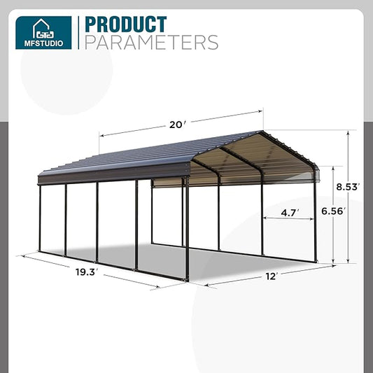 MFSTUDIO Carport 12x20 ft, Outdoor Heavy Duty Metal Shed Carports, Metal Garage Car Shelter Shade Car Port with Galvanized Roof, Frame and Bolts for Cars, Truck and Boats