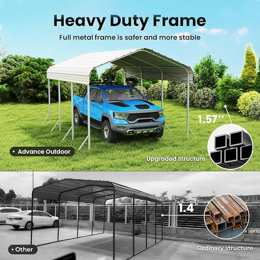 10x15 Carport, Heavy Duty Metal Car Port, All-Weather Protection, Easy Assembly for Cars, Trucks, Boats, Tractors, and Outdoor Storage