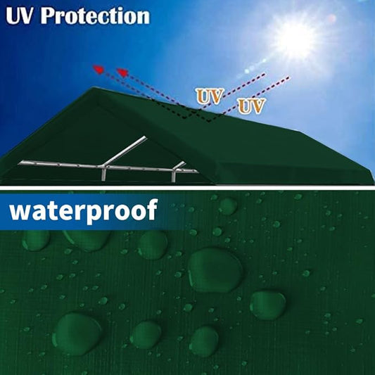 12'x20' Upgraded Carport Replacement Top Canopy Cover for Car Garage Shelter Tent Party Tent with Ball Bungees Green (Only Top Cover, Frame is not Included)
