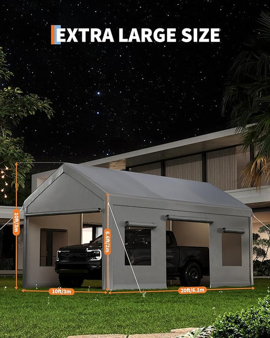 20x20 Carport, Heavy Duty Metal Car Port, All-Weather Protection, Easy Assembly for Cars, Trucks, Boats, Tractors, and Outdoor Storage, Grey