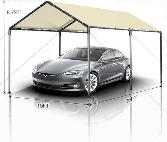 12x20FT Carport, Car Canopy, Portable Garage, Easy to Assemble, Carport Canopy 12x20FT Heavy Duty for Car, Bike, Boat, Party (Khaki)