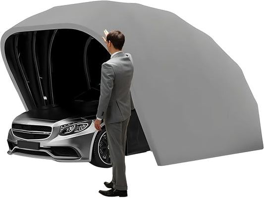 Stainless Steel Grey Carport, Heavy Duty Retractable Car Awning, Foldable Semi-Automatic Durable Shelter, Windproof and Snow-Proof, 600D Heavyweight Oxford Cloth, for Outdoor