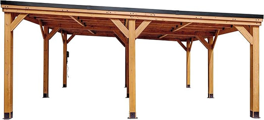 Backyard Discovery Kingsport 20' x 20' Cedar Wood Outdoor Carport Garage with Heavy-Duty Galvanized Steel Slope Roof, Snow Support, Wind Resistance, PowerPort, Shelter to Protect Cars, Boats, Trucks