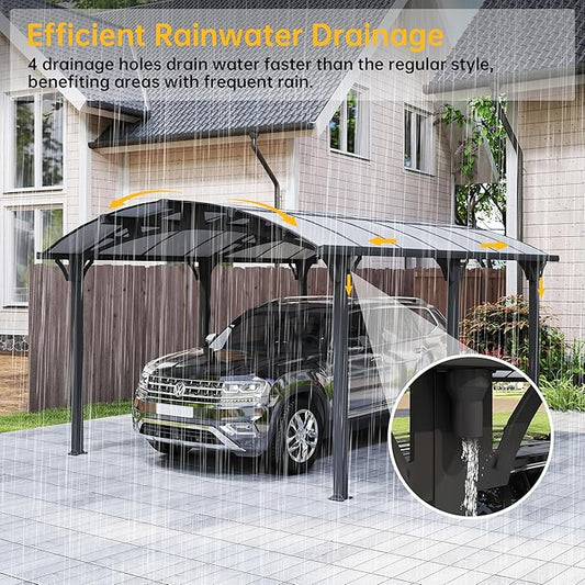 Heavy Duty Carport, 12x16ft Carport with Arch-Roof Polycarbonate Panel, Garage Car Shelter Outdoor Storage Shed for Cars, Boats and Trucks,Gray