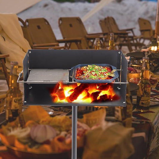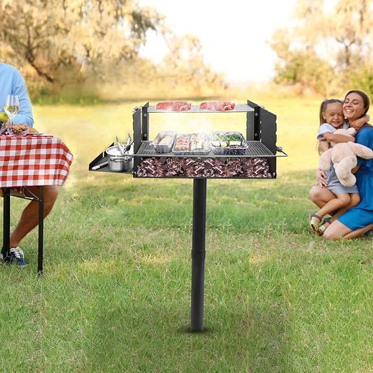 Adjustable Height Large Park Style Grill, Single Post Outdoor Grill, Portable Park Style Charcoal Grill, Camp Grilling Barbecues for Outdoor Barbecues, Parties, Camping.