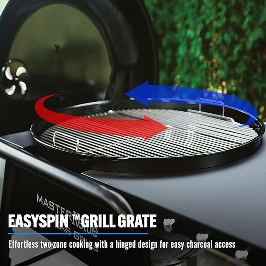 SnS Grills MasterKettle Charcoal Grill and Smoker with Patented Slow ‘N Sear Deluxe Insert, EasySpin Grate for Two-Zone Cooking and Integrated Table, Low ‘N Slow Smoking and BBQing - Black 22-Inch