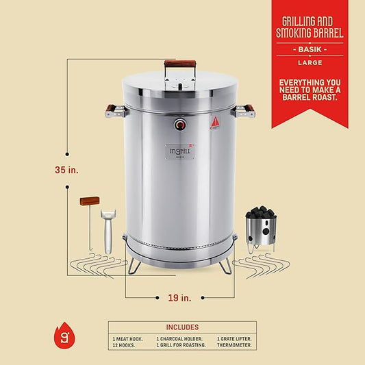 Charcoal Grills - Basic 40 lbs - Stainless Steel Smoker Grill 3-in-1 for Cooking & Home BBQ - Portable Vertical Smoker Barrel for Outdoor & Camping - Meat Grill with Thermometer & Accessories