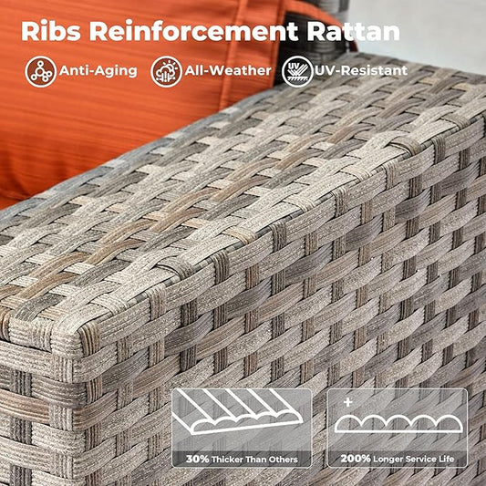 ovios 7 Pieces Patio Furniture Set, Outdoor Wicker Sectional Sofa with 42 Inch Fire Pit Table Comfy Cushions, Modern Modular Deep Seat Rattan Couch Conversation Set, Orange Red