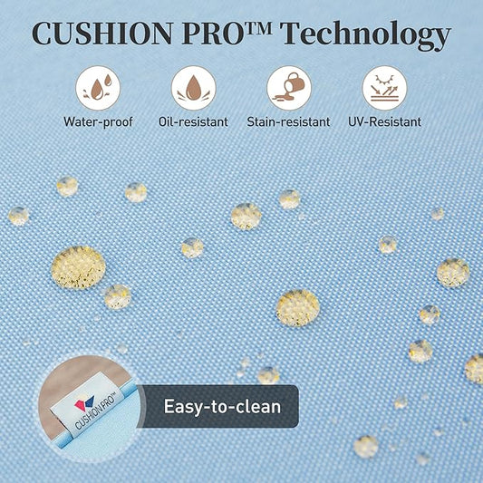 4 Piece Metal Outdoor Patio Furniture Sets with 5000 BTU Firepit Table, Patio Conversation Sets 1 3-seater Sofa, 2 Swivel Chair with 5.75" Thick Cushion, Black Backyard Furniture, Blue
