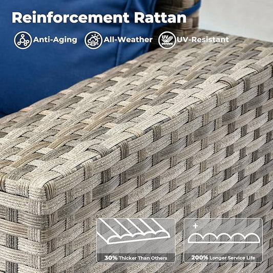ovios 7 Pieces Patio Furniture Set, Outdoor Wicker Sectional Sofa with 42 Inch Fire Pit Table Comfy Cushions, Modern Modular Deep Seat Rattan Couch Conversation Set, Navy Blue