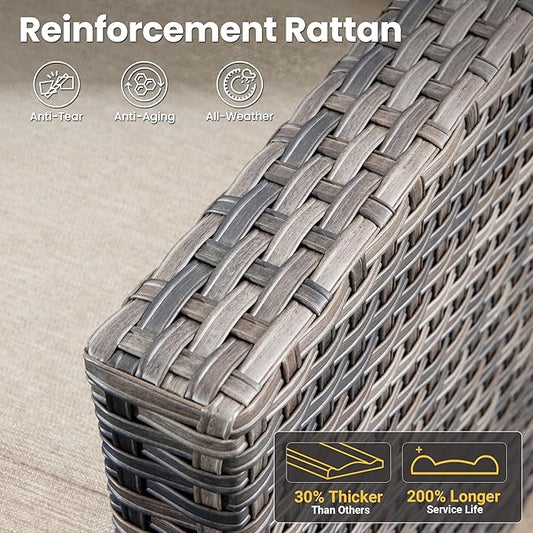ovios Patio Furniture Set, 5 Pieces Outdoor Wicker Sofa Couch with Chairs, Ottomans and Comfy Cushions, All Weather High Back Rattan Conversation Set, Dark Grey