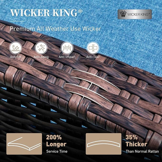 ovios Patio Furniture Set, 8 Pieces Outdoor Wicker Sofa Couch with Chairs, Ottomans and Comfy Cushions, All Weather High Back Rattan Conversation Set, Denim Blue