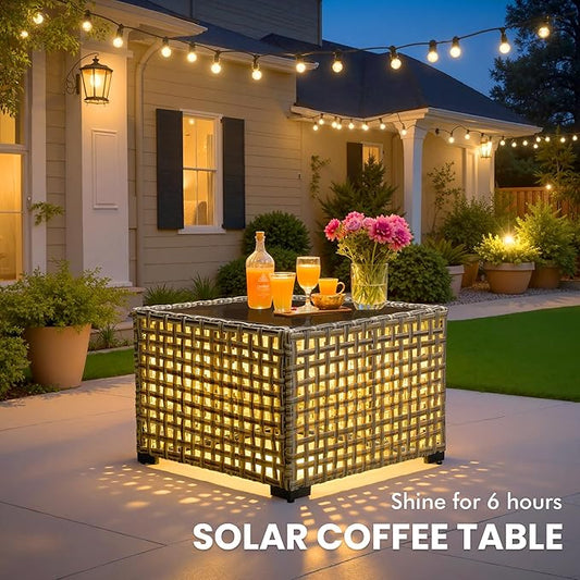 Outdoor Sectional Patio Furniture Set with Glowing Table,7 Pieces Wicker Conversation Sets L Shaped Couch Out Door Sofa Set Outside Furniture for Garden Deck Yard Porch,Beige