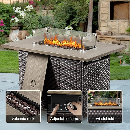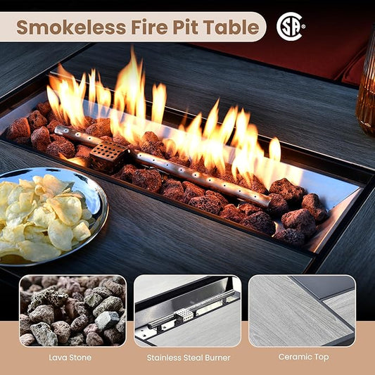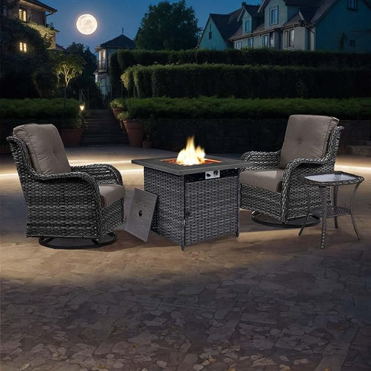 4 Piece Patio Furniture-with 50,000 BTU Gas Propane Fire Pit Table Outdoor Patio Furniture with Swivel Rocker Chairs,Outdoor Couch