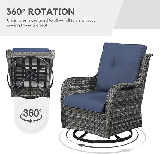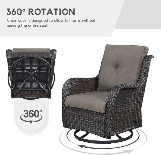 Luxury High Back Outdoor Swivel Rocker Patio Chairs with Side Table & 6-Inch Thick Cushions, 3 Pieces Patio Furniture Set for Porch, Balcony, Deck and Yard