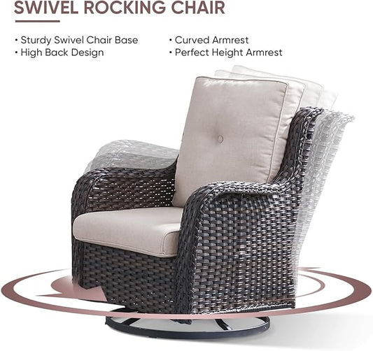 Luxury High Back Outdoor Swivel Rocker Patio Chairs with Side Table & 6-Inch Thick Cushions, 3 Pieces Patio Furniture Set for Porch, Balcony, Deck and Yard