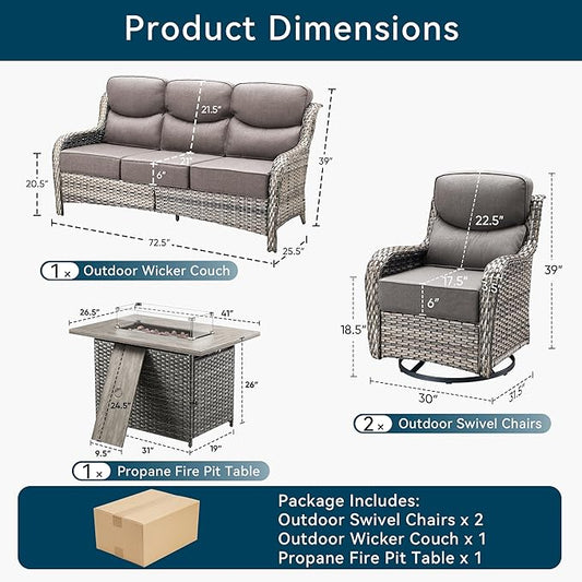 Patio Furniture 4 Piece, All-Weather PE Wicker Outdoor Furniture Set with CSA Certified 30in Propane Fire Pit Table,Outdoor Patio Furniture with Swivel Rocking Chairs