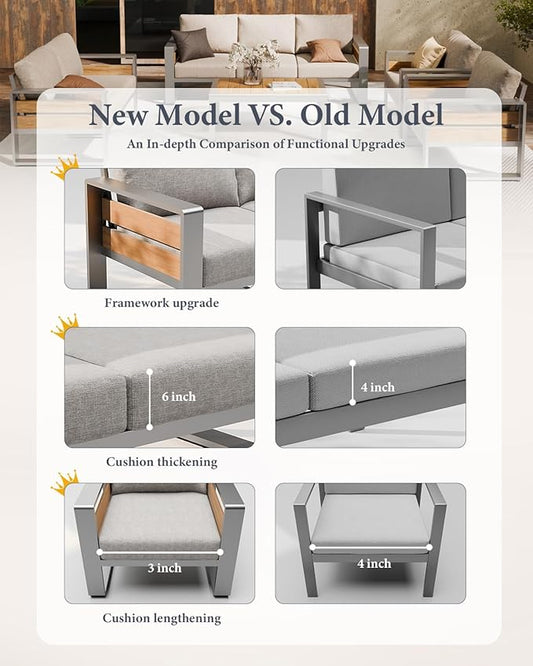 ZANDOR Aluminum Outdoor Patio Furniture Set, 5-Piece Metal Modern Outside Sectional Conversation Lawn Furniture with Coffee Table & Washable Thick Cushions,Seating Sofa for Garden/Backyard/Porch Grey