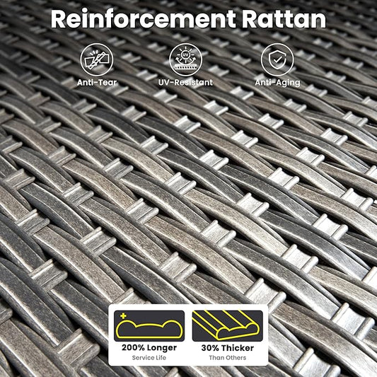 ovios 7 Pieces Patio Furniture Set, Outdoor Wicker Sofa Couch with Rocking Swivel Chairs Fire Pit Table, Modern Deep Seat Rattan Conversation Sets for Porch Deck, Grey