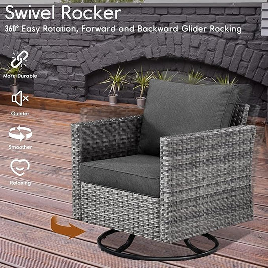 ovios 6 Pieces Patio Furniture Set, Outdoor Wicker Sofa Couch with Rocking Swivel Chairs Comfy Cushions, Modern Deep Seat Rattan Conversation Sets for Porch Deck, Dark Grey