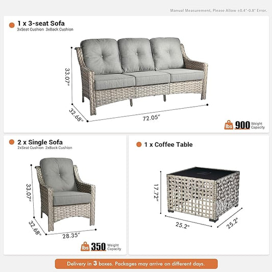4 Pieces Patio Outdoor Furniture Set,All Weather Wicker Rattan Patio Seating Sofa and Chair Set w/ 3-Seater Sofa and Glowing Coffee Table,Outdoor Conversation Sets for Deck Yard Garden,Dark Grey