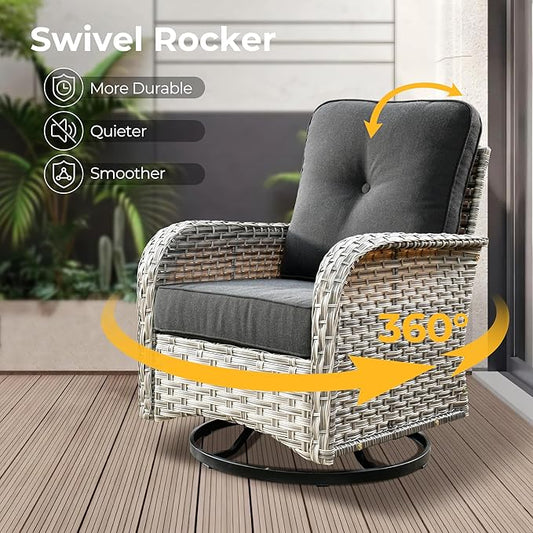HOOOWOOO Outdoor Sectional Patio Furniture Set with Fire Pit Table,13 Pieces Wicker Conversation Sets L Shaped Couch,Extra Deep Out Door Sofa Outside Furniture with Swivel Chairs,Charcoal Gray