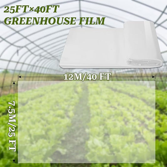 Greenhouse Film 25 x 40Ft Greenhouse Plastic Plant Covers Freeze Protection UV Resistant PE Clear Film for Plants Dust Proof Resist Cold Weather Heavy Rainfall Strong Winds