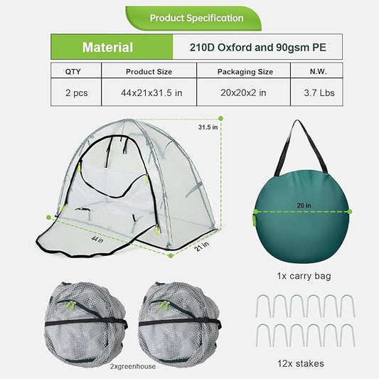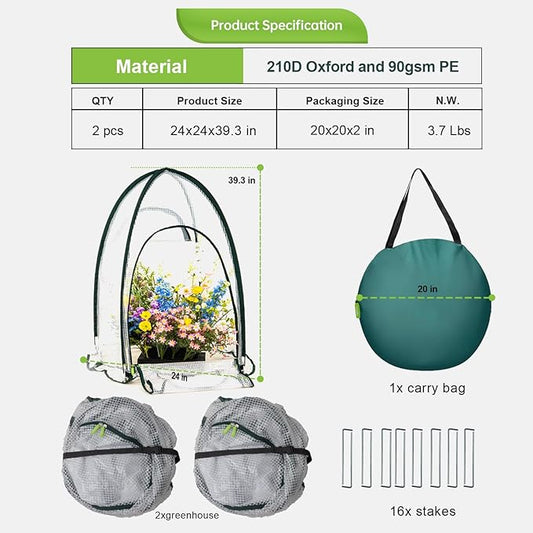 Pop up Greenhouse Tent Cover Tunnel Plant House,Large Gardening Flower Sunshine Room with Mesh Windows,Backyard PE Cover for Cold Frost Protector with Stakes and Rope Guys (Mini Size 29″)