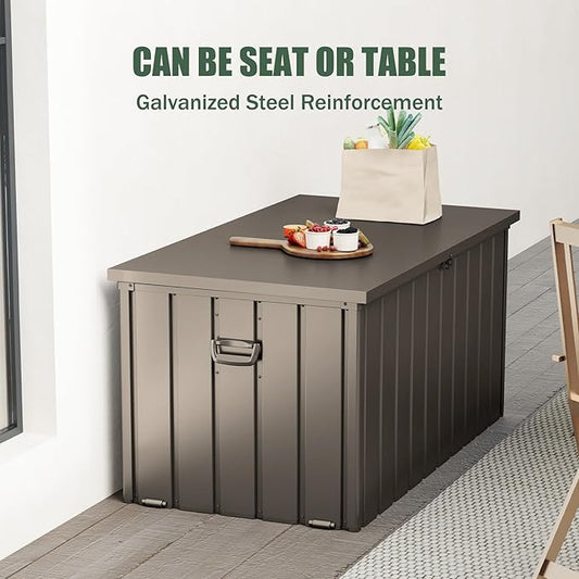Domi Outdoor Storage Deck Box 120 Gallon, Waterproof Lockable Steel Outdoor Storage Container for Outside Cushions, Garden Tools and Pools Equipment, (Brown)