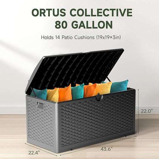 80 Gallon Deck Box, Double Layer Waterproof Resin Outdoor Indoor Storage Box, Lockable & UV Resistant Storage Bin for Patio Furniture, Garden Tools, Pool Accessories (Black)