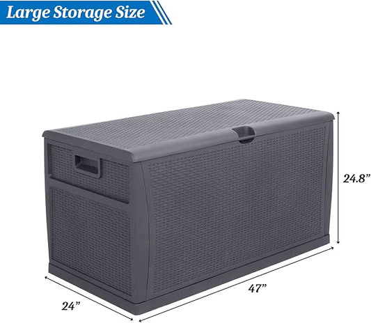 Greesum 100 Gallon Resin Deck Box Large Outdoor Storage with Cushions for Patio Furniture, Garden Tools, Pool Supplies, Weatherproof and UV Resistant, Lockable,Gray