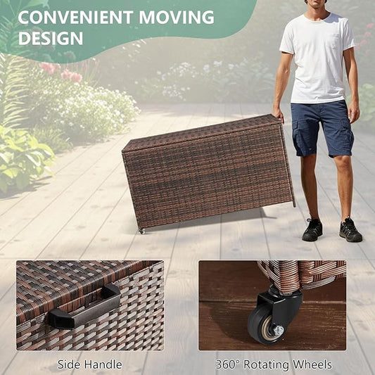 80 Gallon Deck Box, Outdoor Patio Storage Box, Wicker Patio Deck Boxes with Lid, Waterproof and Weather-resistant, Outdoor Furniture for Cushion,Pillows,Indoor, Pool, Balcony, Yard, Garden(Brown)