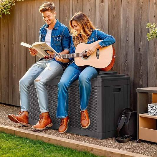 31 Gallon Outdoor Storage Box – Waterproof Deck Box for Garden & Patio,Black