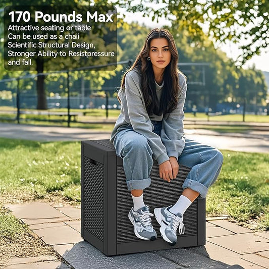 75 Gallon Outdoor Storage Box - Waterproof Resin Deck Box for Patio Cushions & Garden Tools - Lockable Indoor/Outdoor Storage Bin - Sleek Black Design