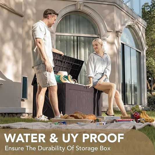 99Gallon Brown Resin Deck Box, Outdoor Storage Box Waterproof Lockable, Patio Deck Box For Package Delivery, Outside Storage Box Container for Furniture Cushions, Garden Tools, Pool Accessories