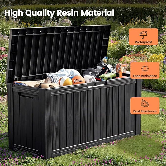Greesum 82 Gallon Resin Deck Box All Weather Large Outdoor Storage for Patio Furniture, Toys, Garden Tools, Lockable, Black
