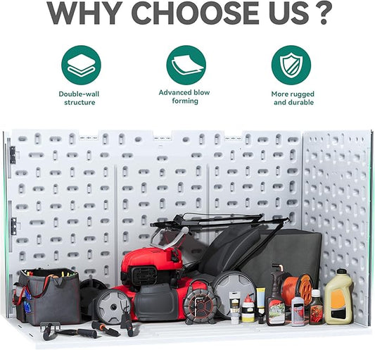 Greesum 260 Gallon HDPE Outdoor Storage Box - Waterproof, Large Capacity Deck Box with Removable Dividers for Patio, Yard, Garden Tools, Light Grey