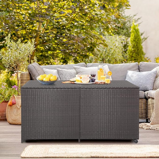 YITAHOME 60 Gallon Outdoor Storage Box, Large Water Resistant Resin Deck Box, Indoor Outdoor Lockable Rattan Storage Container for Patio, Garden, Cushions, Tools, Equipment (Black)