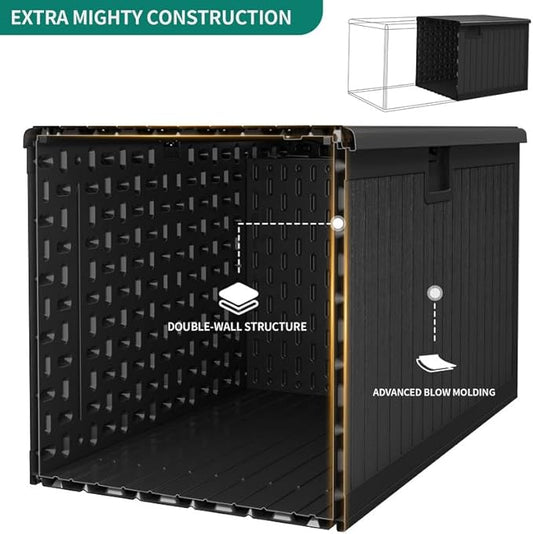 100 Gallon Deck Box,Resin Outdoor Storage Box with Lockable for Patio Furniture, Pool Accessories, Garden Tools Waterproof Outside Storage Box, Black Pattern