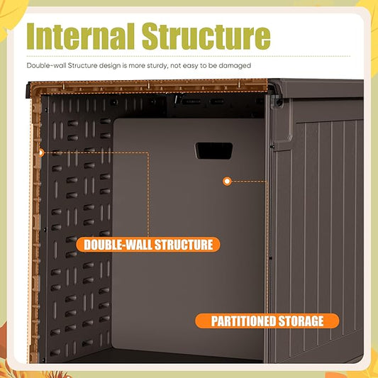 Devoko 240 Gallon Double-Wall Deck Box with Divider, Side Handles, Resin Outdoor Large Storage Box Waterproof and Lockable for Patio Furniture, Garden, Pool (Brown)