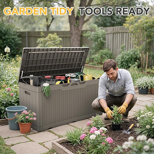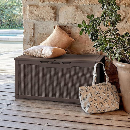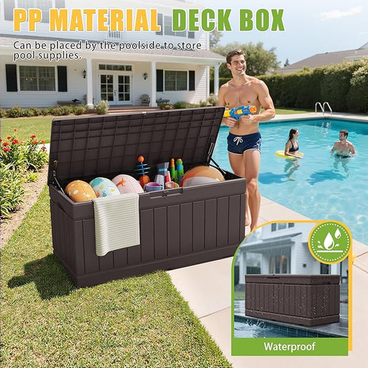 Gizoon 100 Gallon Deck Box, Resin Outdoor Storage Box with Lockable Lid, Waterproof and UV Resistant, Perfect for Storing Patio Mats, Garden Tools, Home and Outdoor Organization