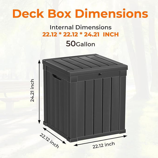 50 Gallon Double-Wall Resin Deck Box - Lockable Waterproof Outdoor Storage Box, 515bs Capacity & Doubles as Seating for Patio Furniture - Garden Tools, Pool Accessories (Black)