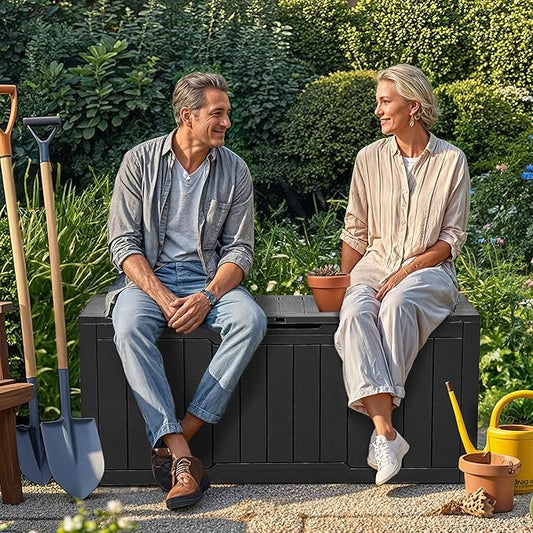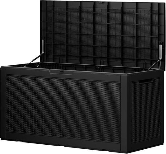 New 100 GallonOutdoor Storage Box,Resin Deck Boxes Waterproof, IndoorOutdoor Bin for Package Delivery, Patio Cushions, Gardening Tools, Lockable, UV Resistant