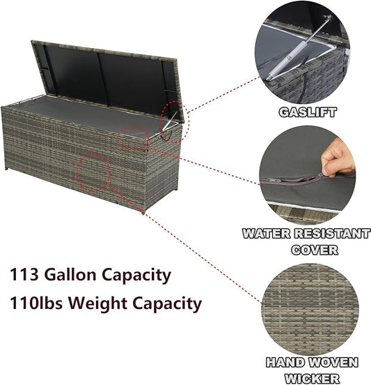 CHUNLY 113 Gallon Outdoor Waterproof Large Wicker Deck Box with Lids Indoor Storage Bench Storage Cabinet for Patio Furniture Cushions, Packages, Pillows and Garden Tools, Gray