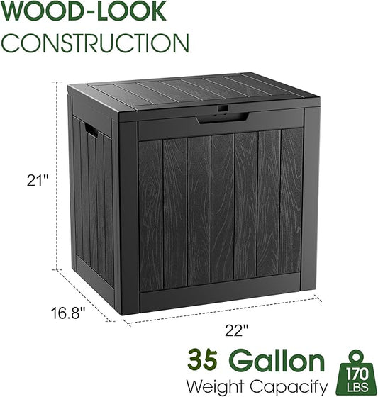 KAMABOKO Deck Box, 35 Gallon Resin Indoor and Outdoor Storage Boxes Waterproof for Garden Tools, Pool Accessories Storage Bench, Patio Furniture and Cushions with Lockable Lid, Black