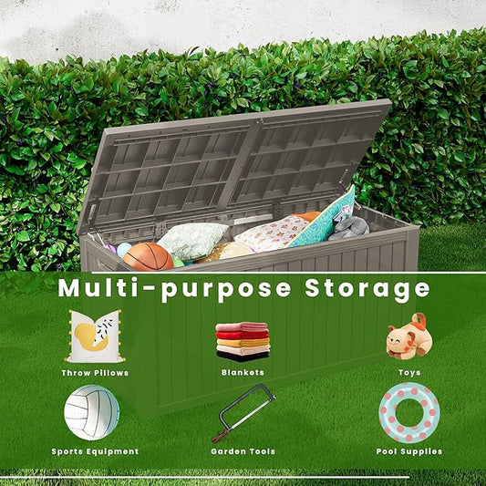 200GAL Brown Industrial - Grade Outdoor Deck Box with Lock Hole - Waterproof, SGS - Certified UV Protection, Built for Commercial Patio and Event Supply Storage, Quick Assembly